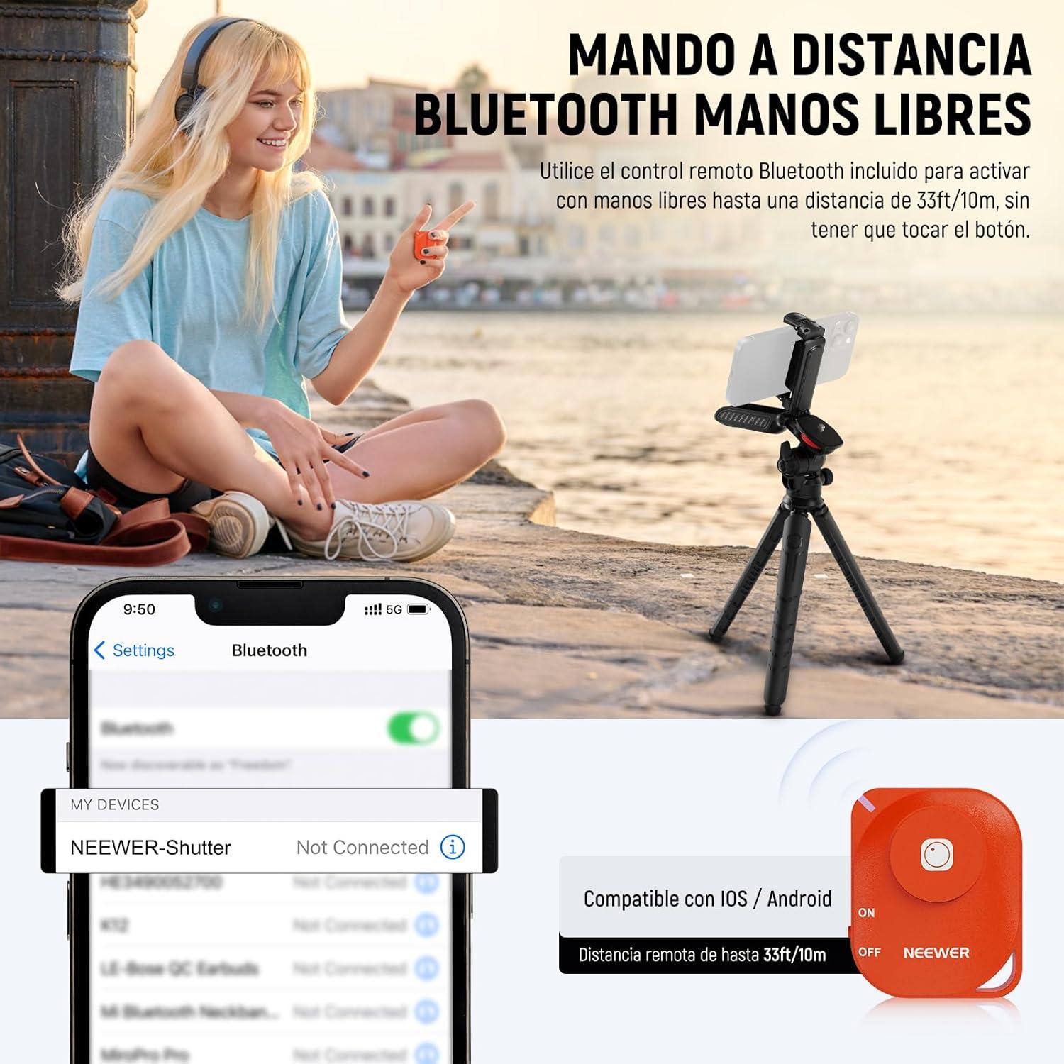 | Disparador remoto Bluetooth | Alcance de hasta 10 metros |